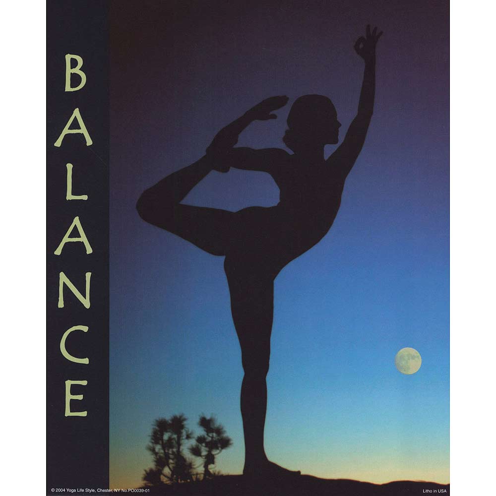 Balance Poster - Large Laminated. A lovely variation on the dancer pose. An example of the firm balance we can achieve through yoga. Poised between day and night, rooted in the earth while reaching for the sky. Printed on high quality 100# cover stock this Balance Poster is available in 2 sizes: 16" x 20" and 8" x 10".