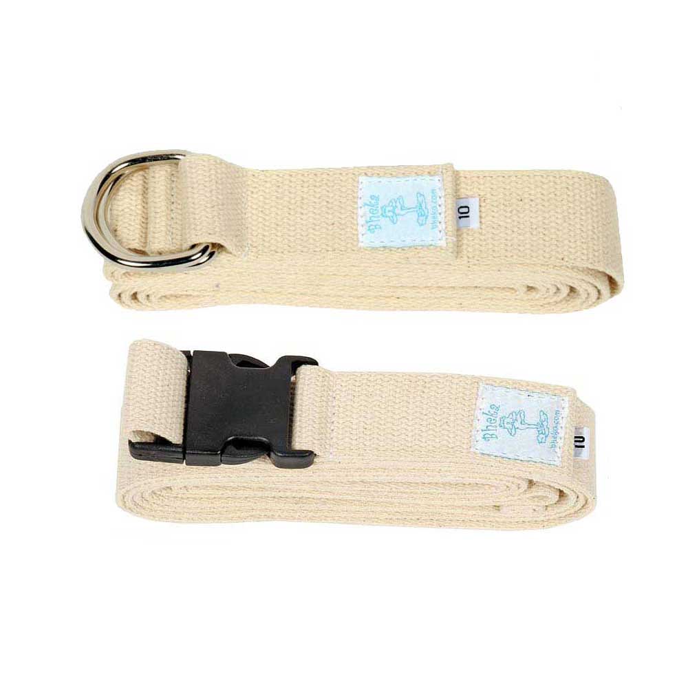 The bheka 10' Natural Cotton Strap with Metal D-Rings or Buckles used to extend your reach. As a result, the strap helps to open the shoulders and hips and maintain a stretch in arms or legs. Encourages deeper overall movement into many yoga poses.