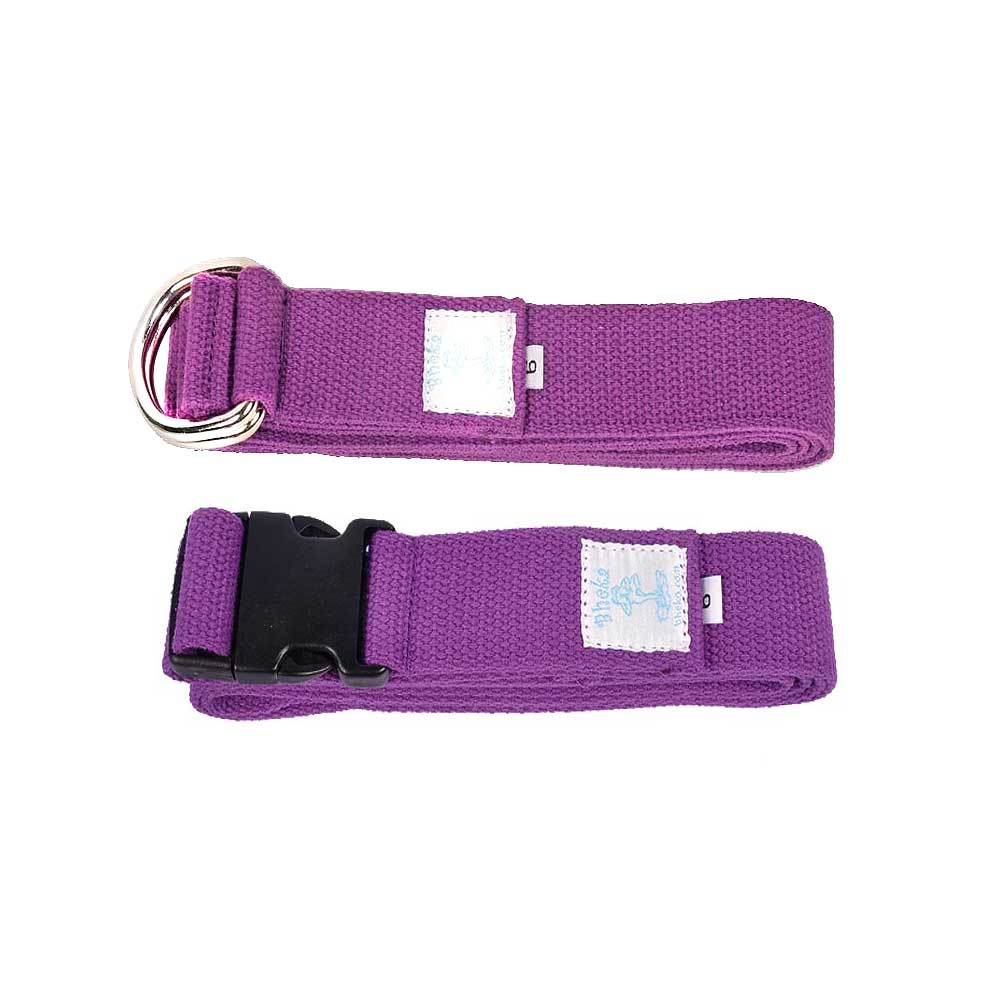 The bheka 6' Purple Cotton Strap with Metal D-Rings assists in the extension of reach. Because shoulders and hips are opened, thus a stretch in arms or legs is maintained. Encouragement to move deeper overall into many yoga poses.