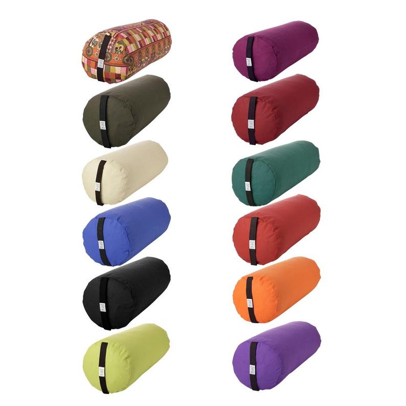 bheka Round 100% Cotton Yoga Bolsters hand stuffed in the US with dense batting for firm, yet comfortable support. The choice of discriminating Yogis for over a decade, especially loved in Iyengar Studios throughout the US.