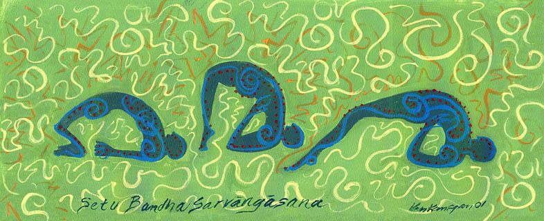 For years I've been searching for Yoga Art like NVK – Setu Bandha Sarvangasana - Laminated. Specifically, art that is both decorative and respectful of postures in classical yoga asana. In this case, I discovered the website of The Chicago Yoga Center, and artist Nancy Van Kanegan, who supplied illustrations for their website. Immediately, I knewNVK – Setu Bandha Sarvangasana - Laminated was the work I had been hoping to find.