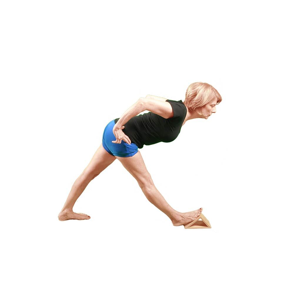 This lovely Pune Calf Stretching Block makes deep calf stretches fun and easy to do. It measures 8, 6 and 5 inches long on each side and 4 inches wide. Two angles of stretch are possible 40 degrees or 50 degrees. Hand crafted from Indian Pine mill scraps. No two calf stretchers are exactly the same.