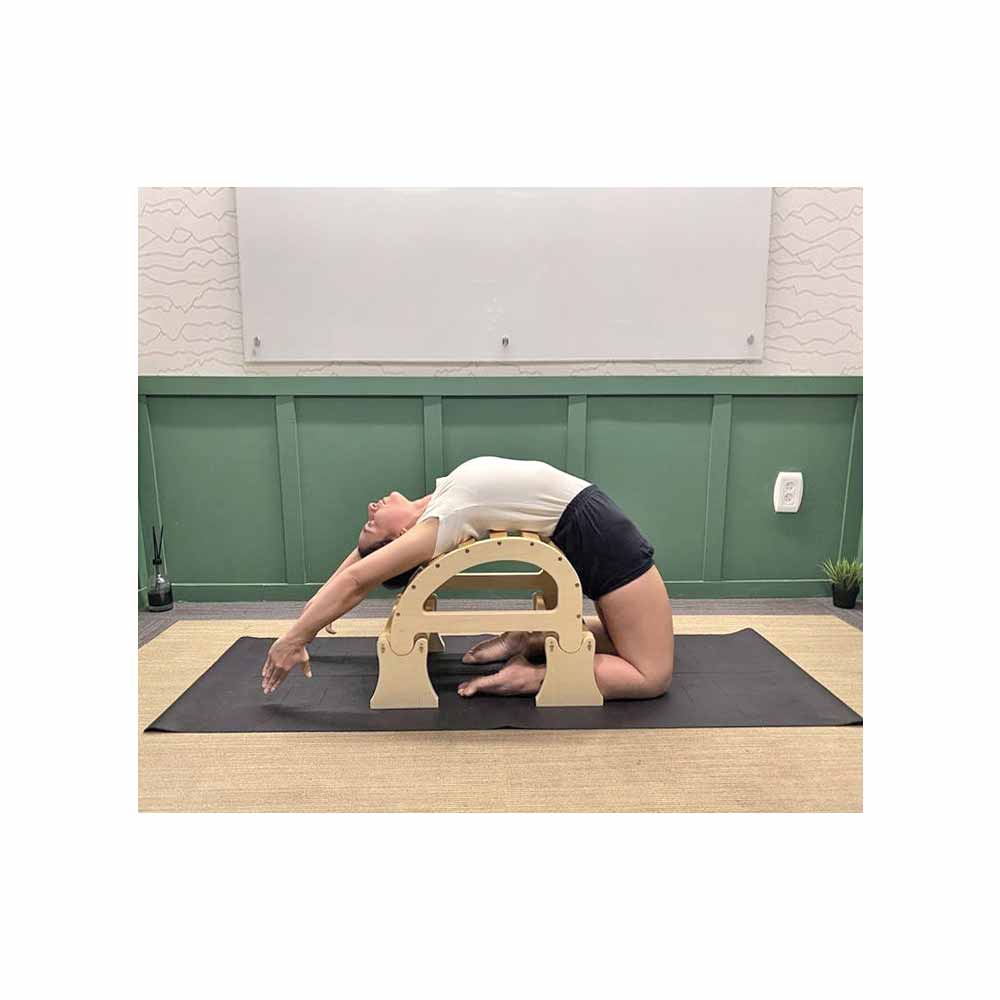 The Pune Small Back Arch with Elevation Feet, is made from renewable Indian pine. It is imported from Pune, India, the home of Iyengar Yoga and it is popular in Iyengar Yoga circles.