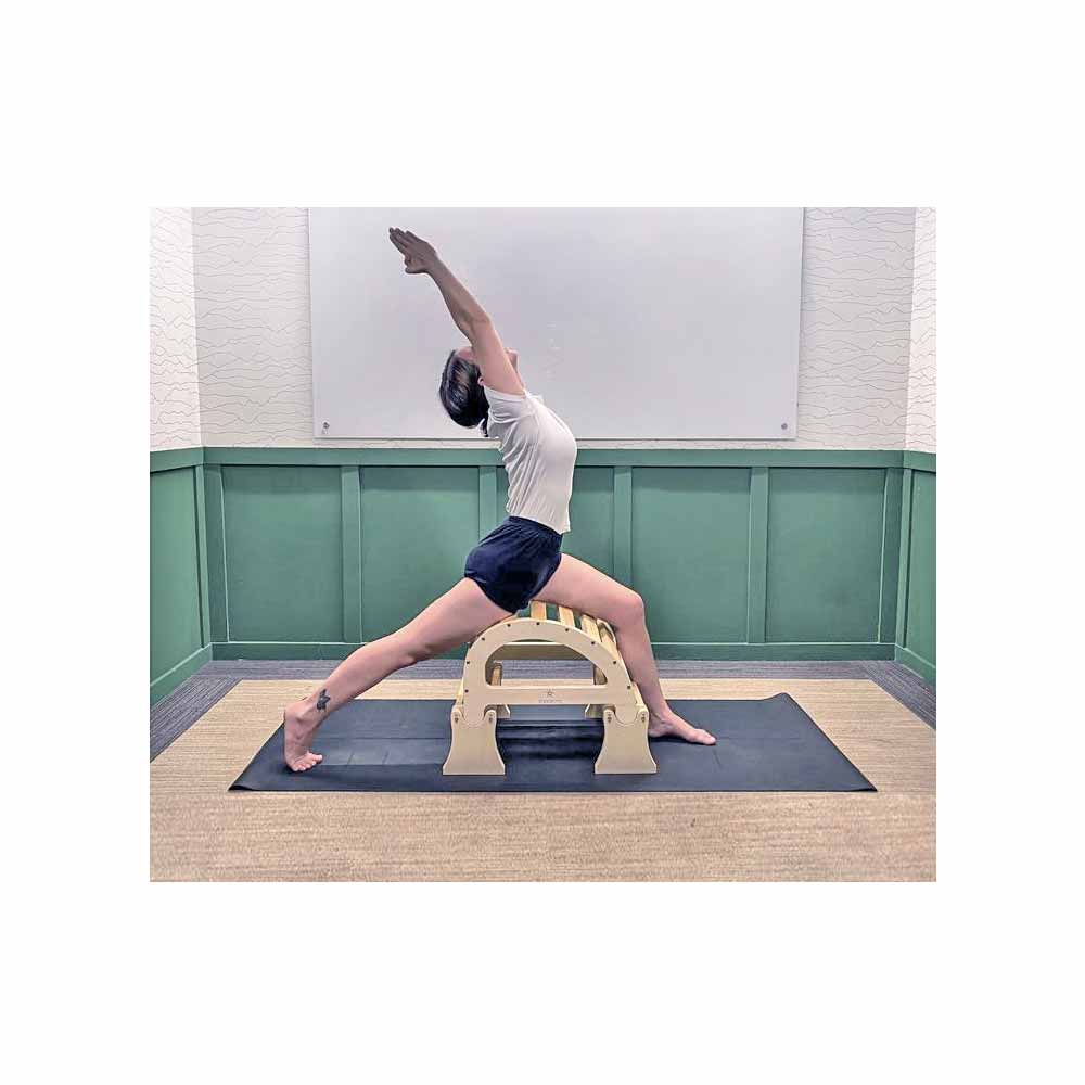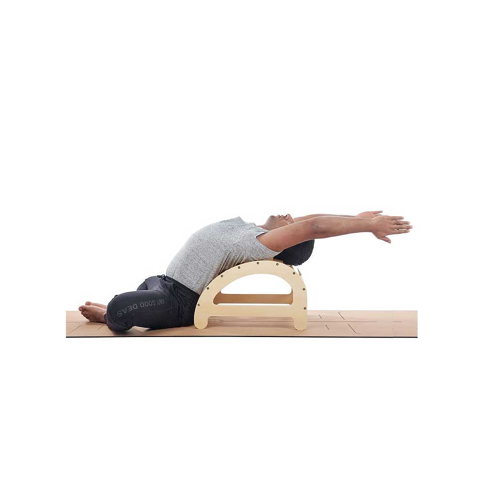 This Pune Small Back Arch with Elevation Feet is a versatile prop that is great for working on back bending poses. It can also be employed to enhance some forward bending and standing poses. The use pictures on this page will give you some ideas for use.