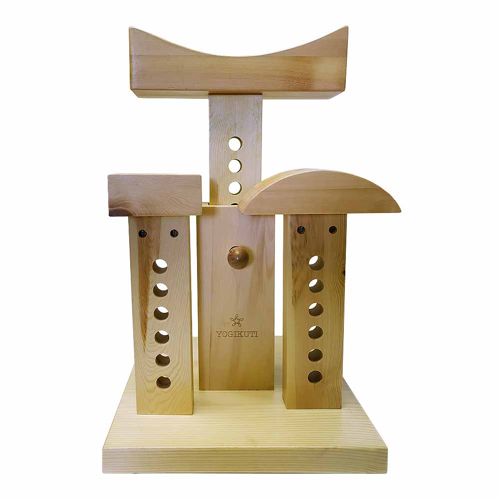 The Pune Stump Set Prop Kit is popular in Iyengar Yoga. Indeed, the numerous settings allow experimentation for just the right firm support. Accordingly, a more comfortable practice, with sensory feedback, yields a better pose.