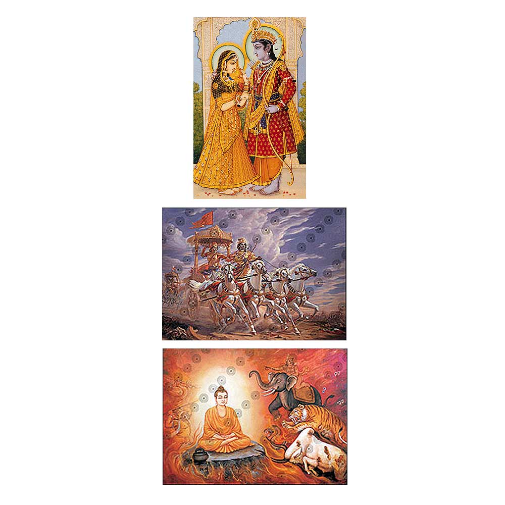 Created by two of India's most skilled devotional artists who coincidentally have the same last name, Indra Sharma and B. G. Sharma they combine traditional and updated views for a stunning effect.