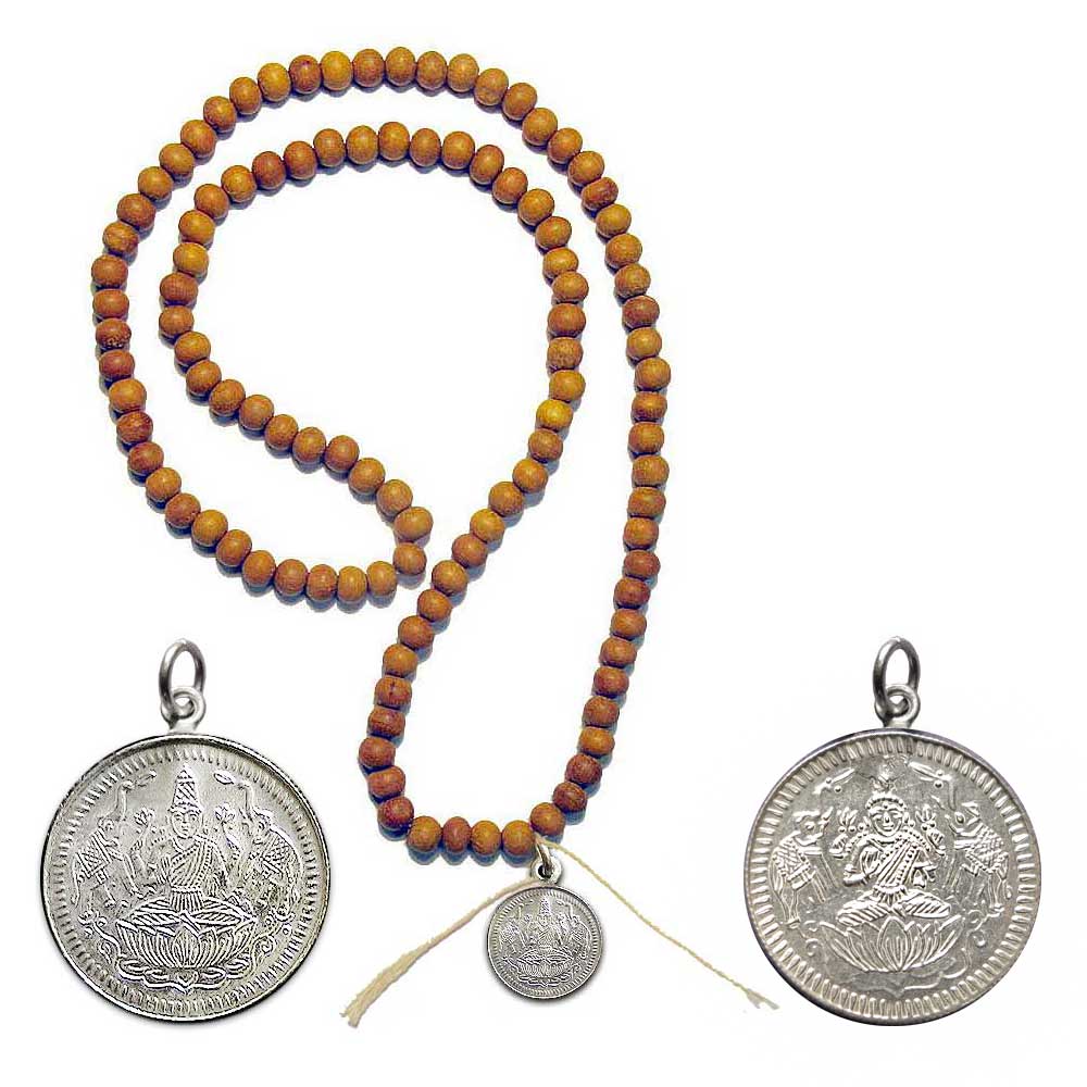 Sandalwood Mala with Lakshmi or Hanuman Charm