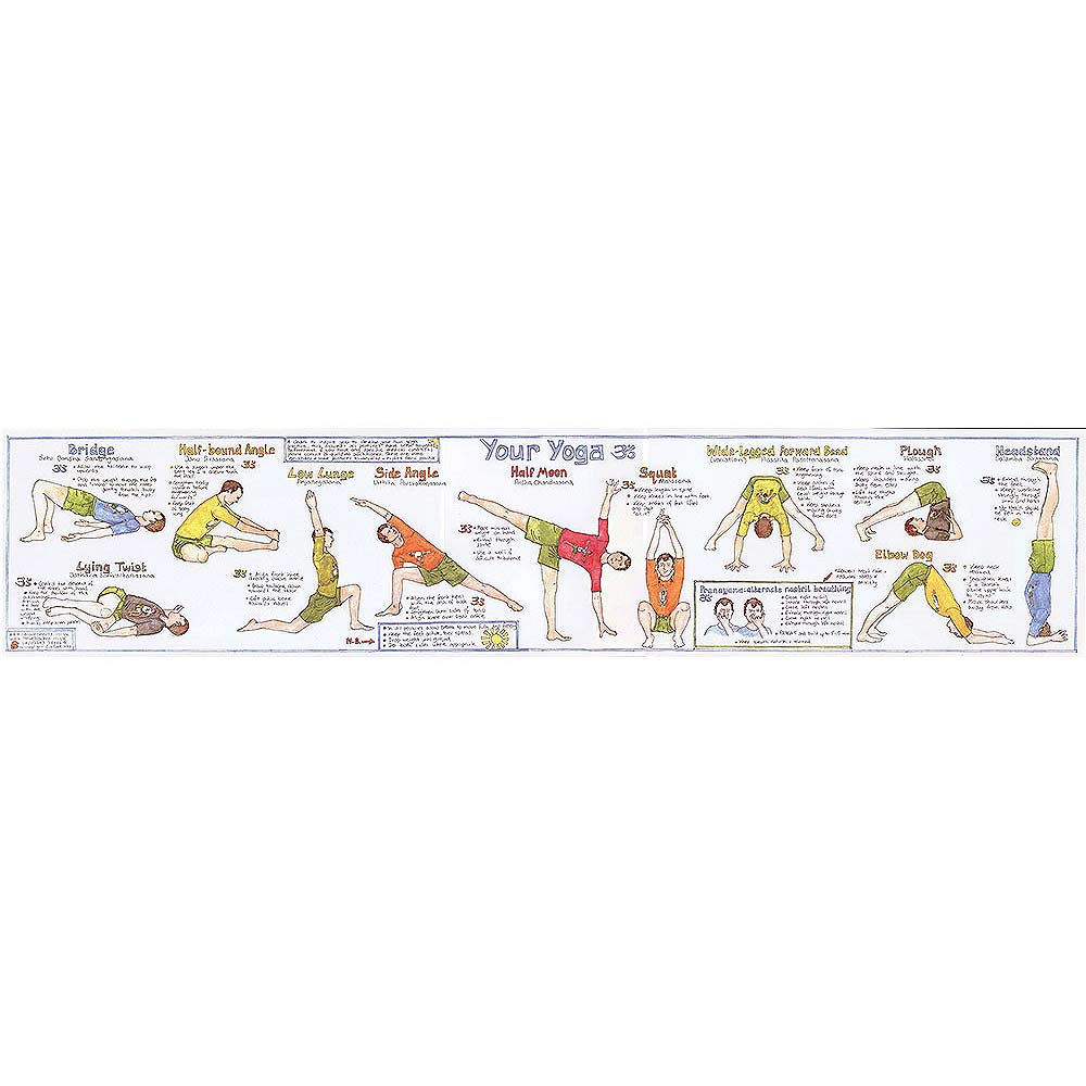 The Your Yoga Panel Poster 7" x 35". For one thing, Artist Liz Cook says she wants this poster to inspire people to "develop your own yoga practice". Indeed, with the help of bodyworker, sports therapist and yogi Steve Bracken, Liz developed this colorful, fun and practical poster. Certainly, some of the most commonly practiced yoga asanas depicted.