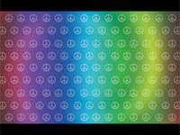 Beautiful swirling patterns of color alternate with the multi-peace sign image to make a truly lovely display for your resting computer.